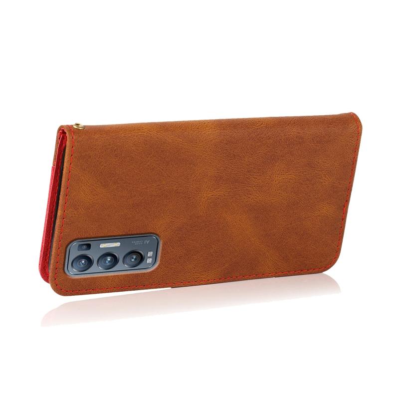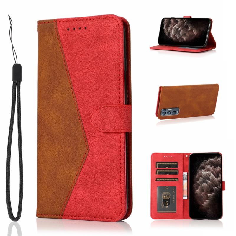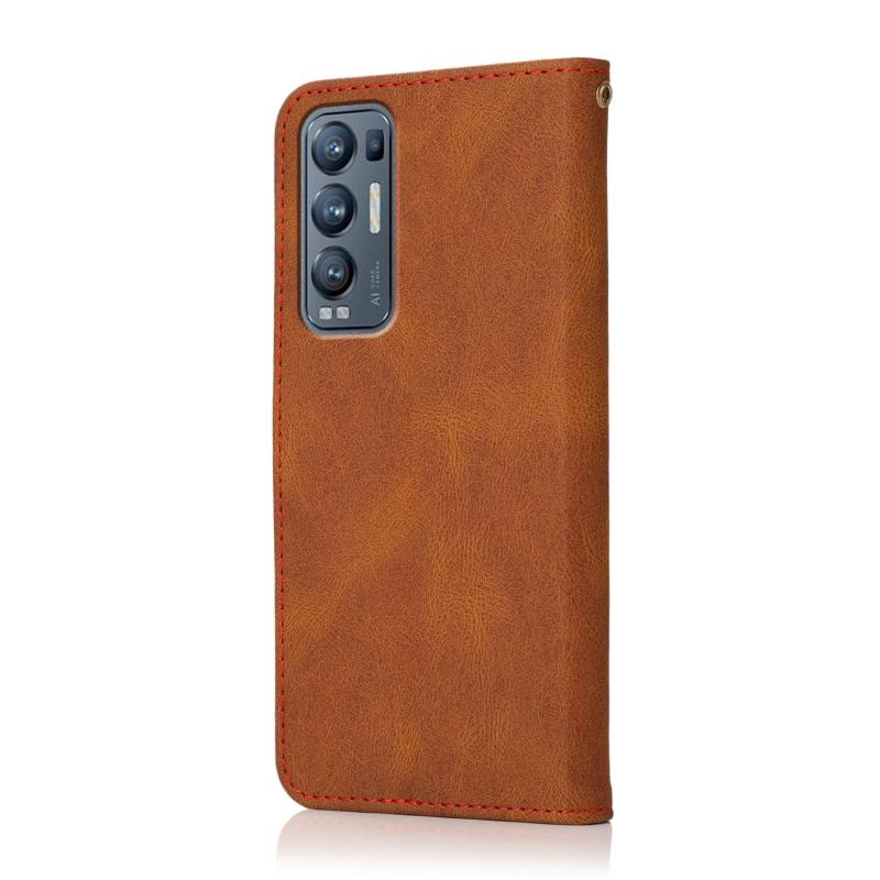 Θήκη τηλεφώνου από δέρμα με διχρωμία ραφής για OPPO Find X3 Neo (Καφέ-κόκκινο)