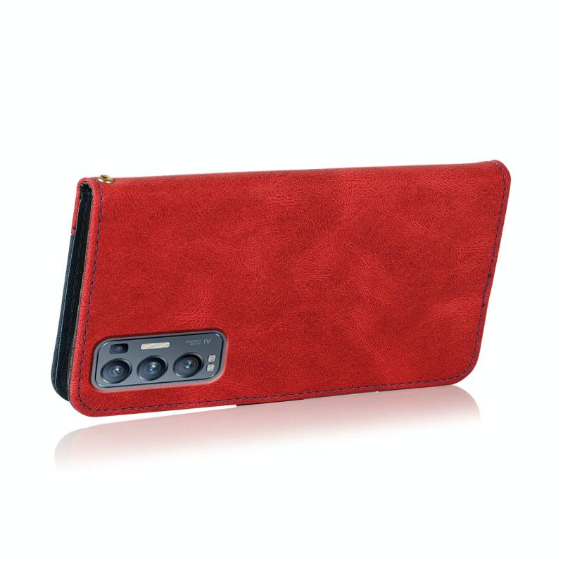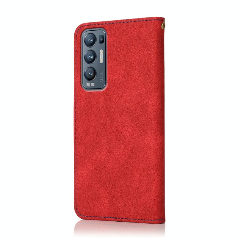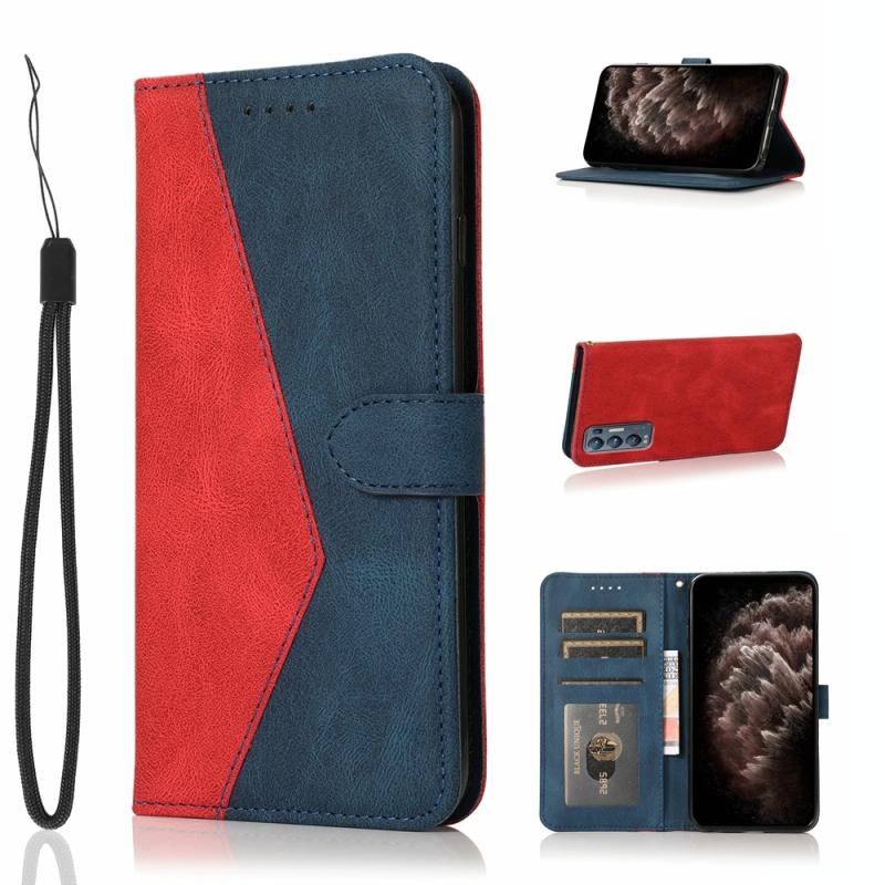 Θήκη τηλεφώνου από δέρμα με διχρωμία ραφής για OPPO Find X3 Neo (Κόκκινο Μπλε)
