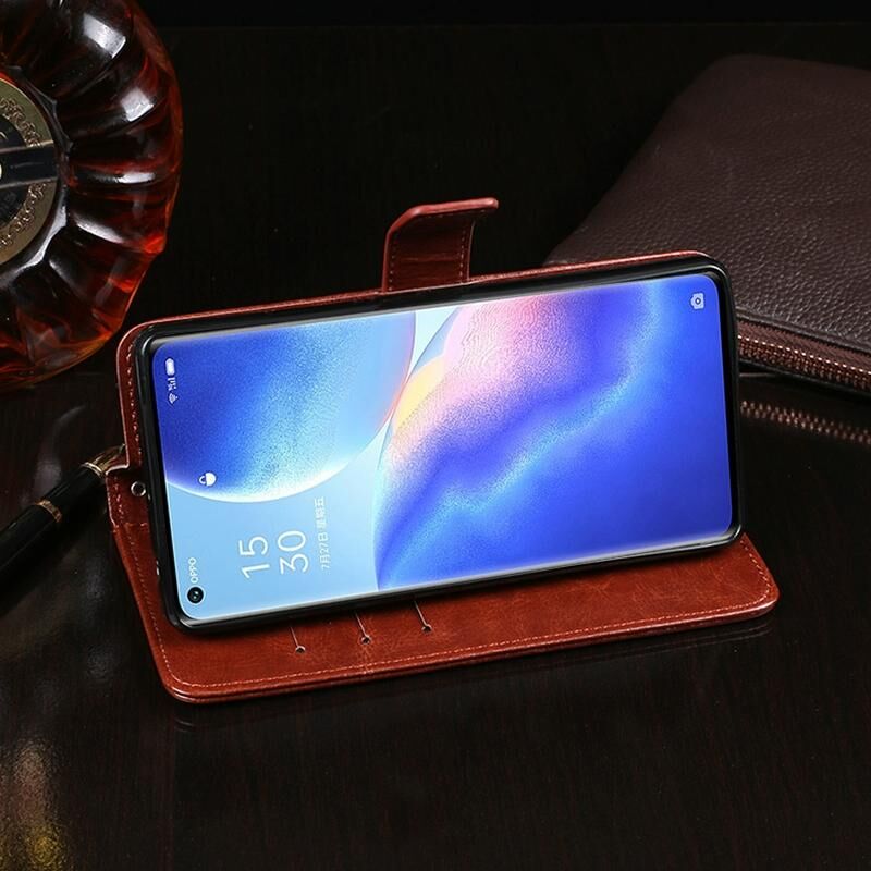 Θήκη δέρματος οριζόντιας αναδίπλωσης με υφή Crazy Horse για OPPO Find X3 Neo idewei με βάση & υποδοχές καρτών & πορτοφόλι (Καφέ) (idewei)