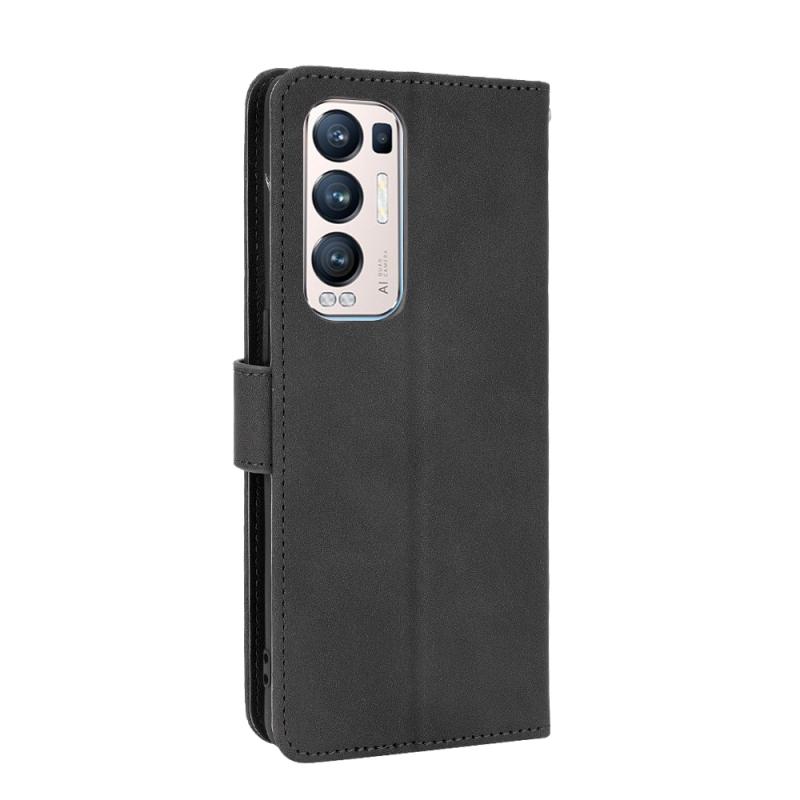 Θήκη για OPPO Find X3 Neo με αίσθηση δέρματος, μονόχρωμη, με μαγνητικό κούμπωμα, οριζόντια, με υφή μοσχαρίσιου δέρματος, από δερματίνη PU, με βάση στήριξης & θήκες για κάρτες & πορτοφόλι (Μαύρο)