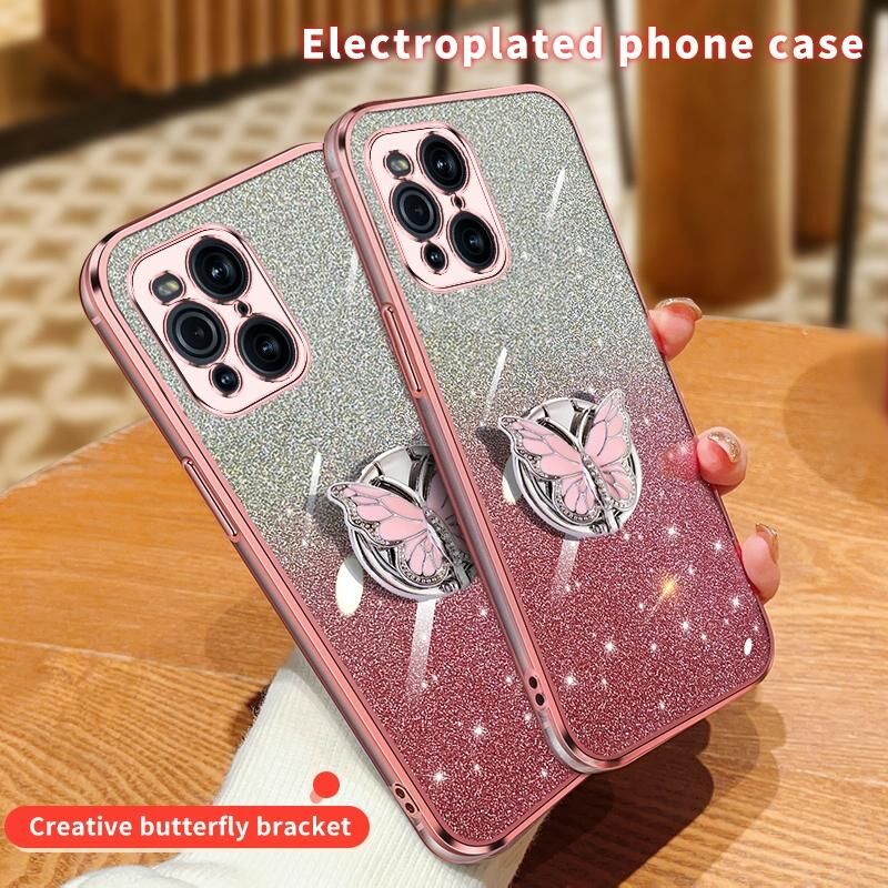 Για OPPO Βρείτε X3 Επιμεταλλωμένο διαβάθμιση Glitter πεταλούδα κάτοχος TPU τηλέφωνο υπόθεση (μαύρο)