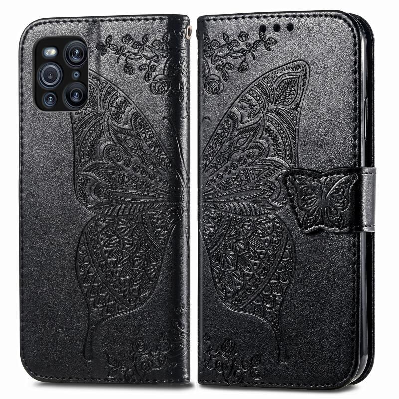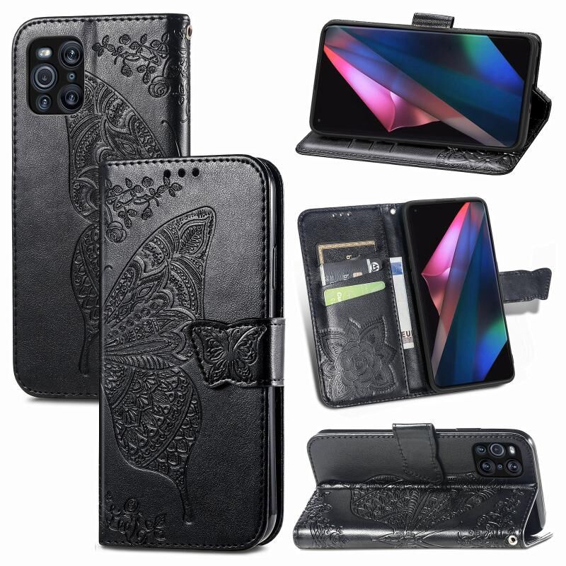Για OPPO Βρείτε X3 Pro πεταλούδα αγάπη λουλούδια ανάγλυφο οριζόντια Flip δερμάτινη θήκη με κάτοχο & υποδοχές για κάρτες & πορτοφόλι & κορδόνι (μαύρο)