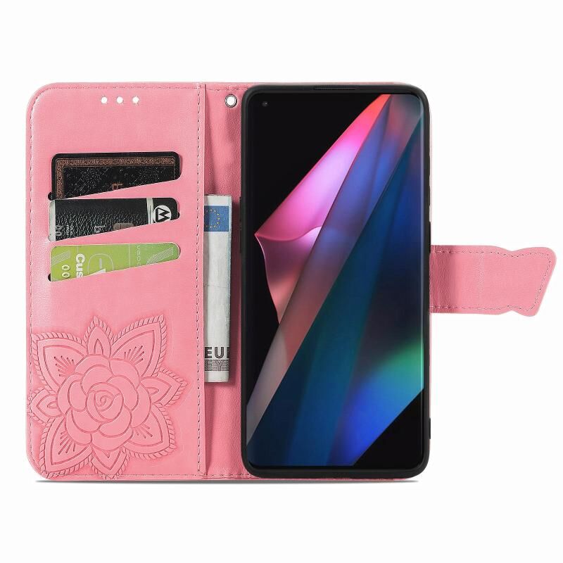 Για OPPO Βρείτε X3 Pro πεταλούδα αγάπη λουλούδια ανάγλυφο οριζόντια Flip δερμάτινη θήκη με κάτοχο & υποδοχές για κάρτες & πορτοφόλι & κορδόνι (ροζ)