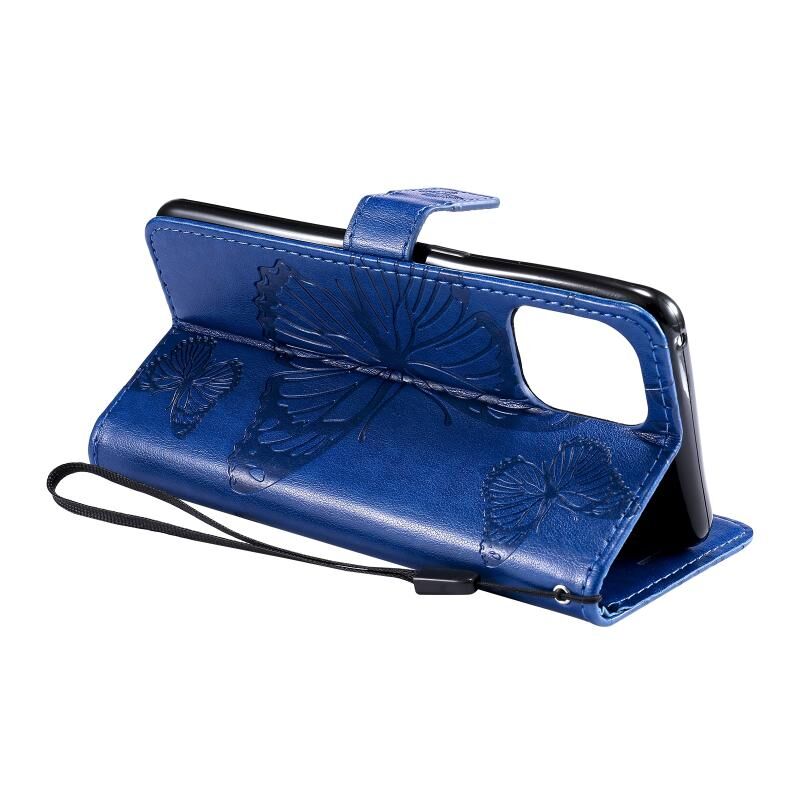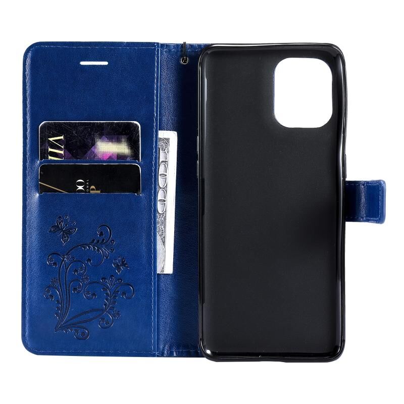 Για OPPO Find X3 Pro / Find X3 Πιεσμένη εκτύπωση πεταλούδα μοτίβο οριζόντια Flip PU δέρμα υπόθεση με κάτοχο & υποδοχές καρτών & πορτοφόλι & Lanyard (Μπλε)