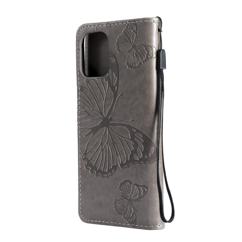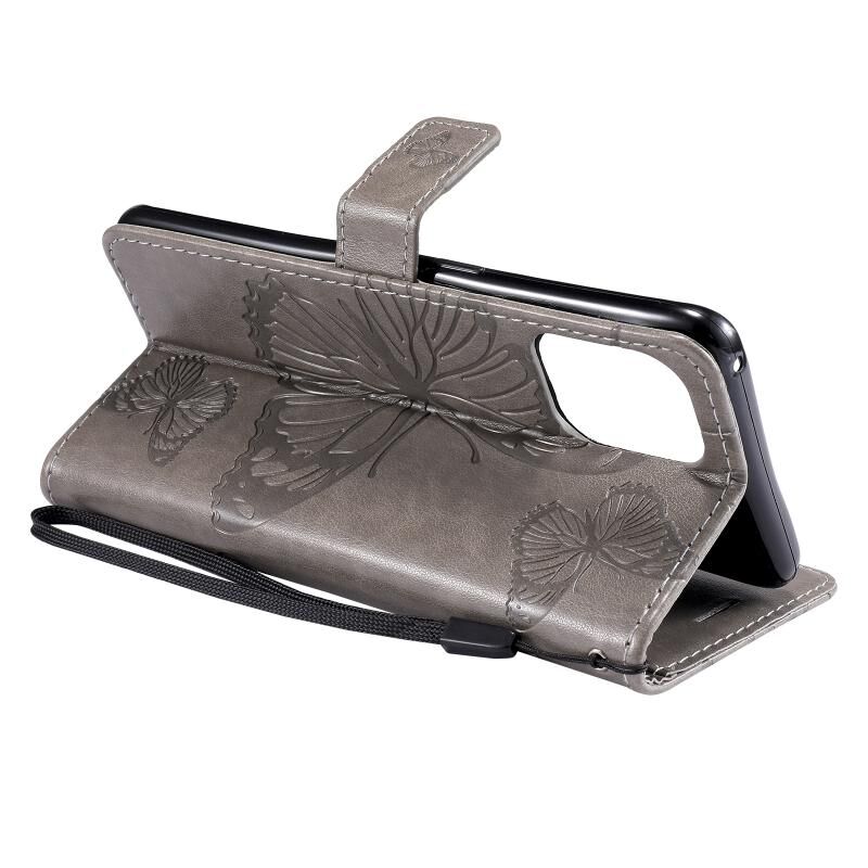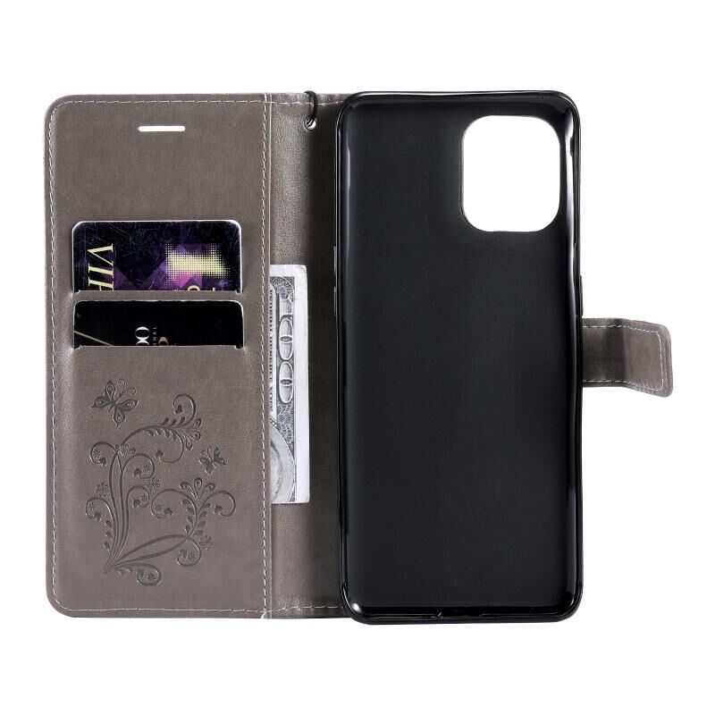 Για OPPO Find X3 Pro / Find X3 Πιεσμένη εκτύπωση πεταλούδα μοτίβο οριζόντια Flip PU δέρμα υπόθεση με κάτοχο & υποδοχές καρτών & πορτοφόλι & Lanyard (γκρι)