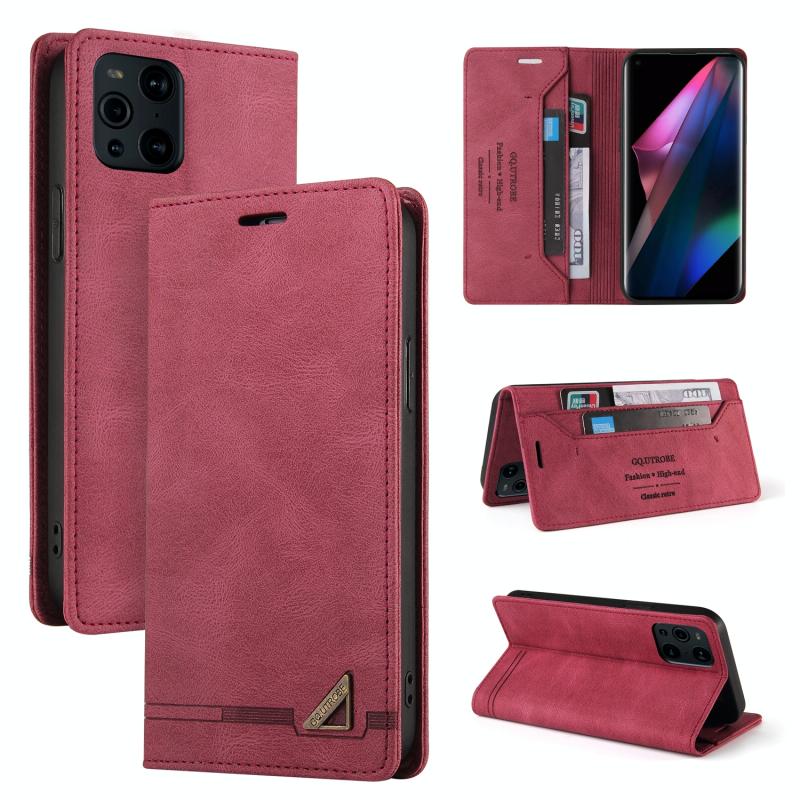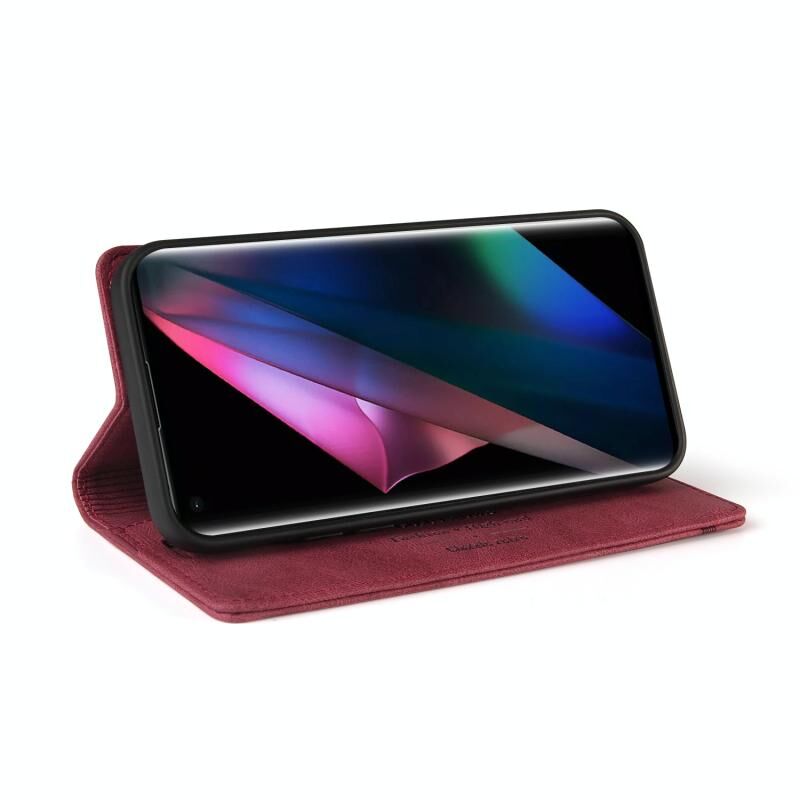 Θήκη δέρματος οριζόντιας αναδίπλωσης με αίσθηση δέρματος και αντι-κλοπής για OPPO Find X3 Pro με βάση & υποδοχές καρτών & πορτοφόλι (Μπλε)