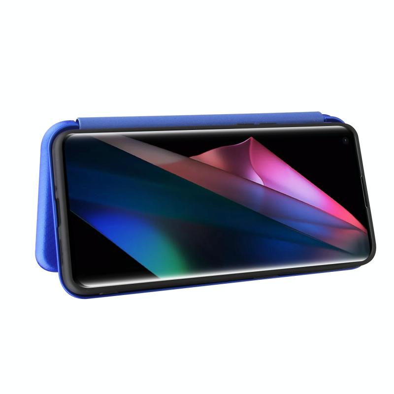 For Oppo Find X3 / X3 Pro Carbon Fiber Texture Horizontal Flip TPU + PC + PU Leather Case with Card Slot(Blue)