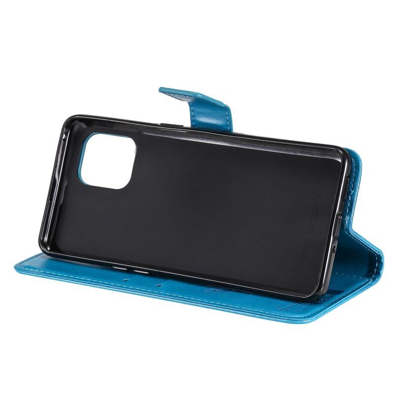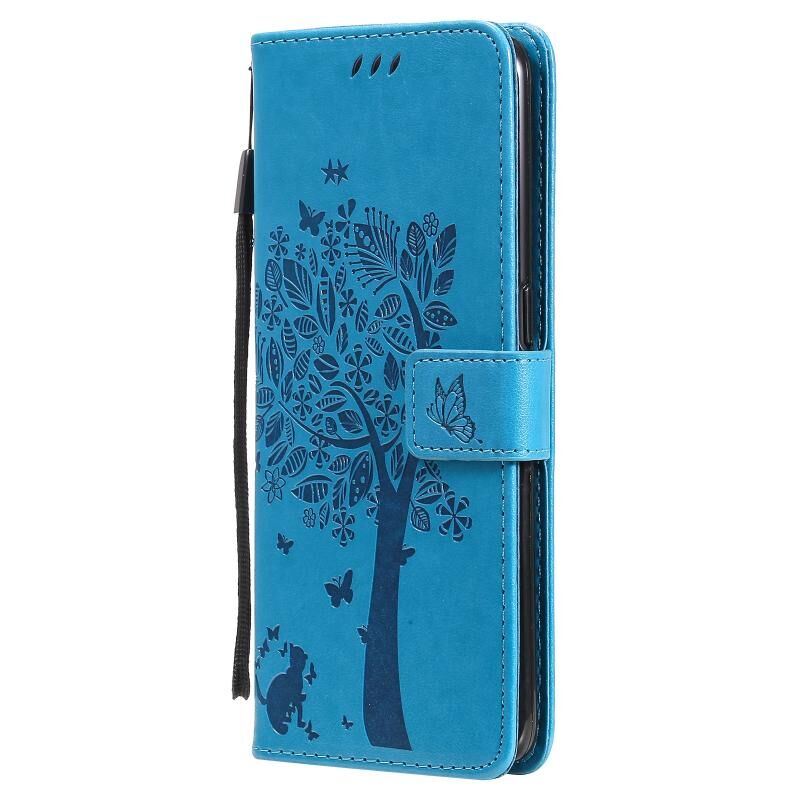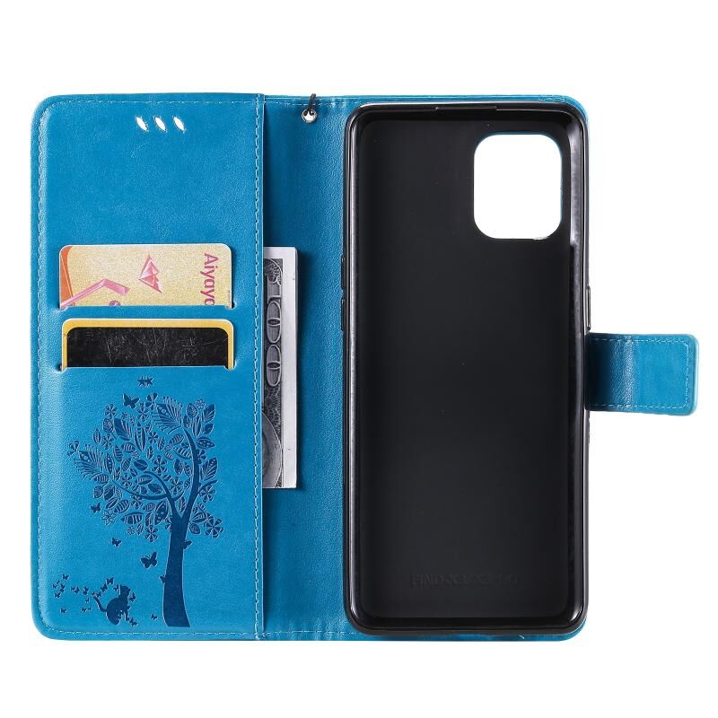 Θήκη για OPPO Find X3 / X3 Pro με σχέδιο Δέντρου & Γάτας, εκτυπωμένη με θερμοτύπωση, οριζόντια, από δερματίνη PU με βάση στήριξης & θήκες για κάρτες & πορτοφόλι & κορδόνι (Μπλε)