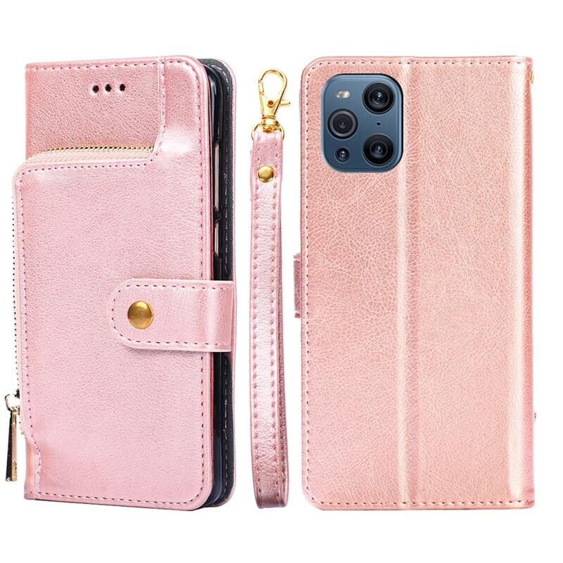 Για OPPO Βρείτε X3 / X3 Pro φερμουάρ τσάντα PU + TPU οριζόντια Flip δερμάτινη θήκη με υποδοχή & υποδοχή κάρτας & πορτοφόλι & κορδόνι (Ροζ χρυσός)
