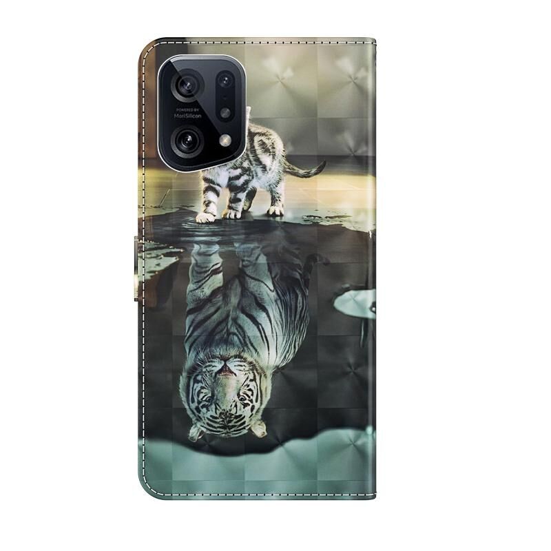 Θήκη τηλεφώνου για OPPO Find X5, TPU + Δερμάτινη PU με σχέδιο 3D ζωγραφικής (Γάτα, Τίγρης)