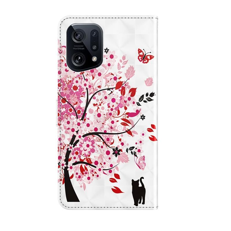 Θήκη τηλεφώνου για OPPO Find X5, TPU + Δερμάτινη PU με σχέδιο 3D ζωγραφικής (Γάτα Κάτω από το Δέντρο)