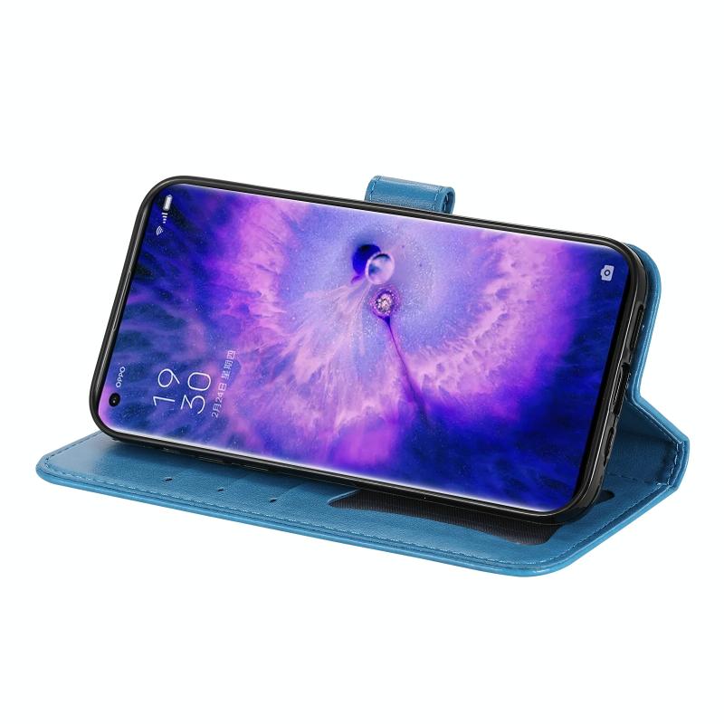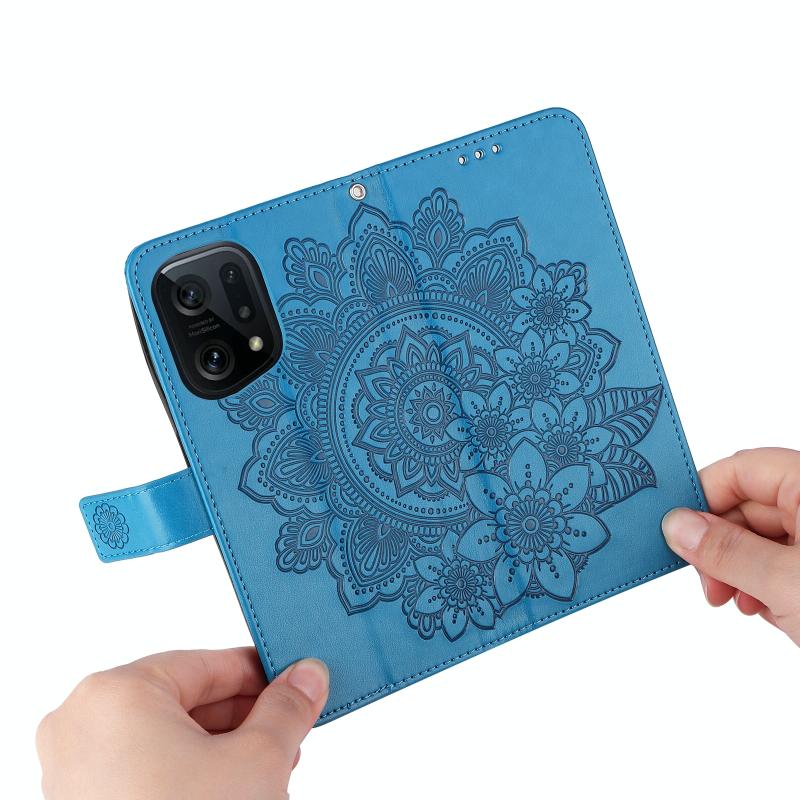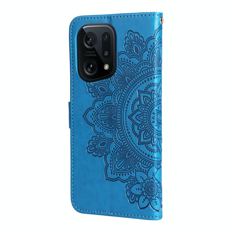 Θήκη τηλεφώνου από δέρμα με ανάγλυφα 7 πέταλα λουλουδιών για OPPO Find X5 (Μπλε)