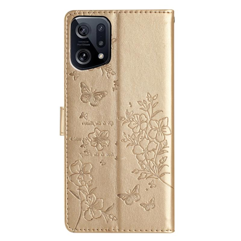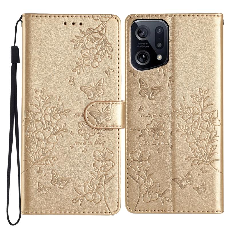 For OPPO Find X5 Butterflies and Flowers Leather Phone Case(Gold)