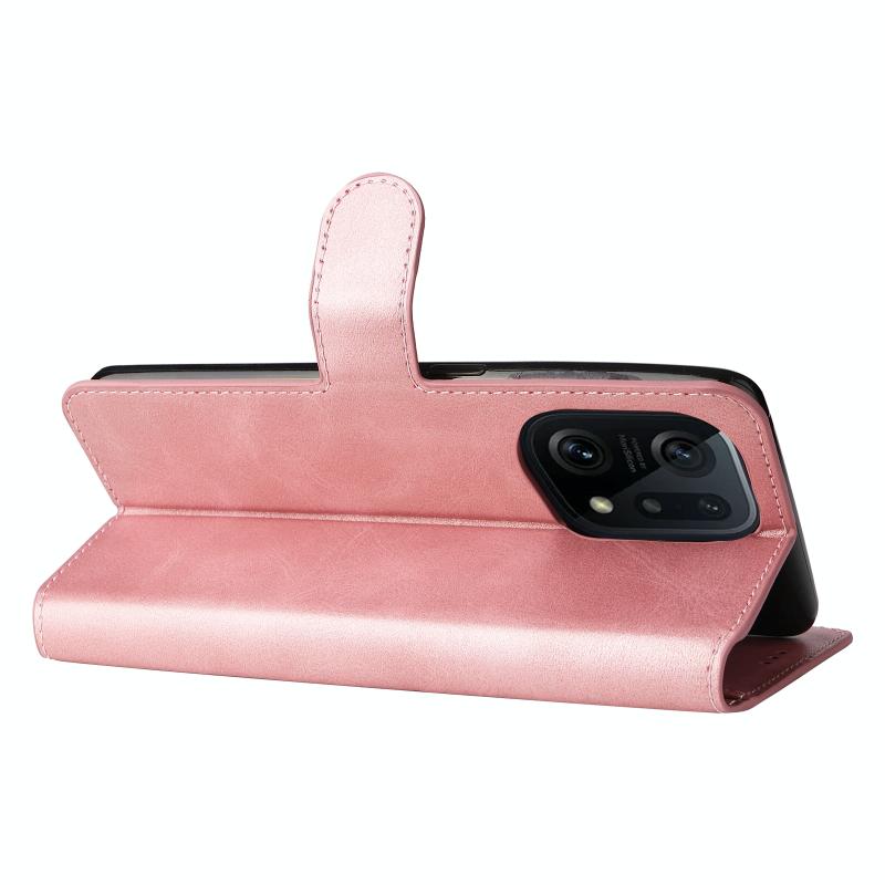 Θήκη δέρματος οριζόντιας αναδίπλωσης για OPPO Find X5 Classic με υφή μοσχαρίσιου δέρματος PU + TPU (Ροζ χρυσός)