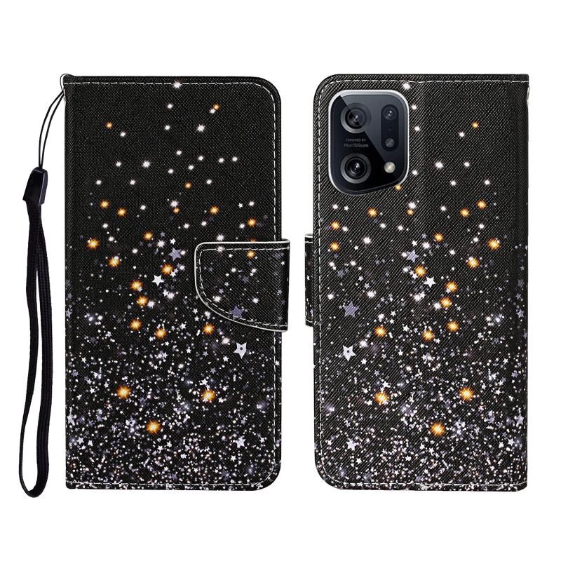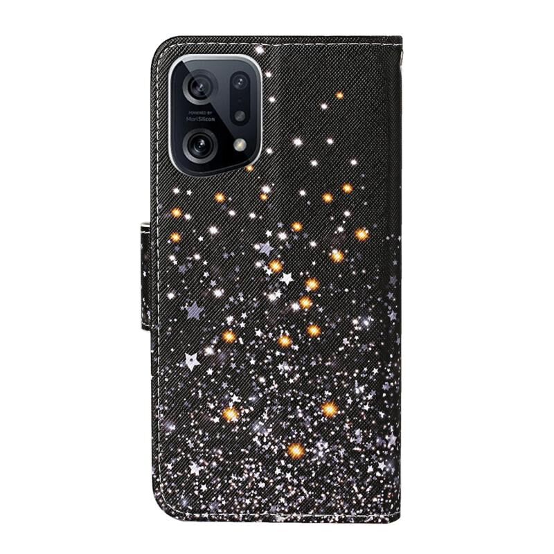 Θήκη τηλεφώνου από δέρμα με σχέδιο αναδιπλούμενου πολύχρωμου σχεδίου για OPPO Find X5 (Μαύρο Πεντάγραμμο)