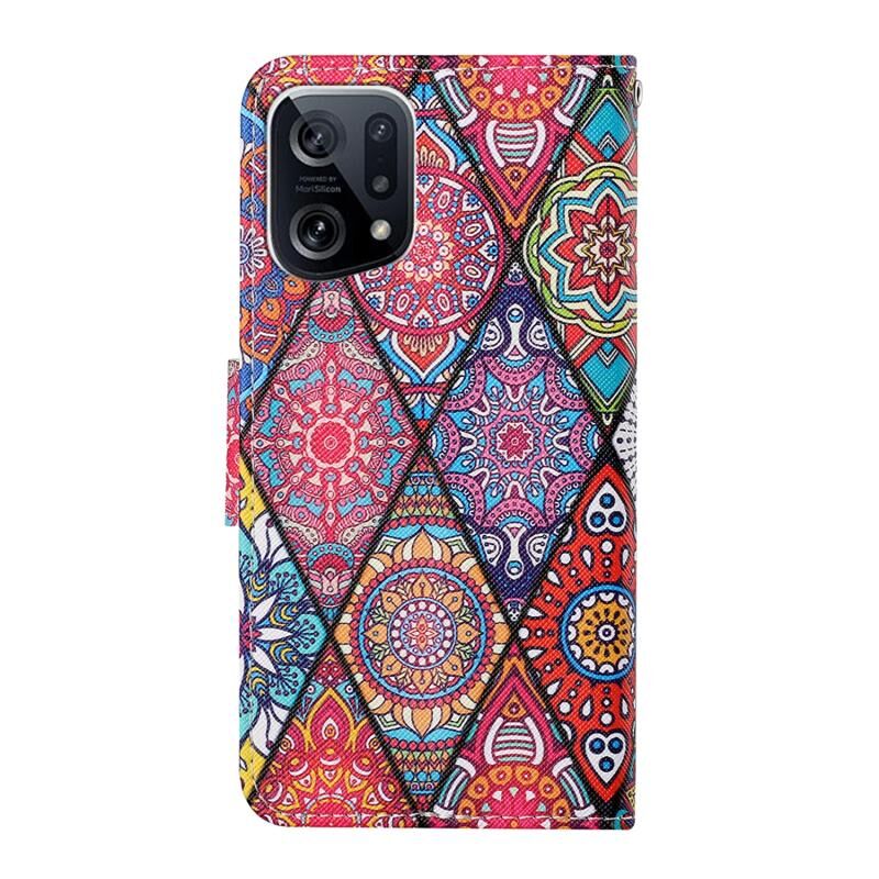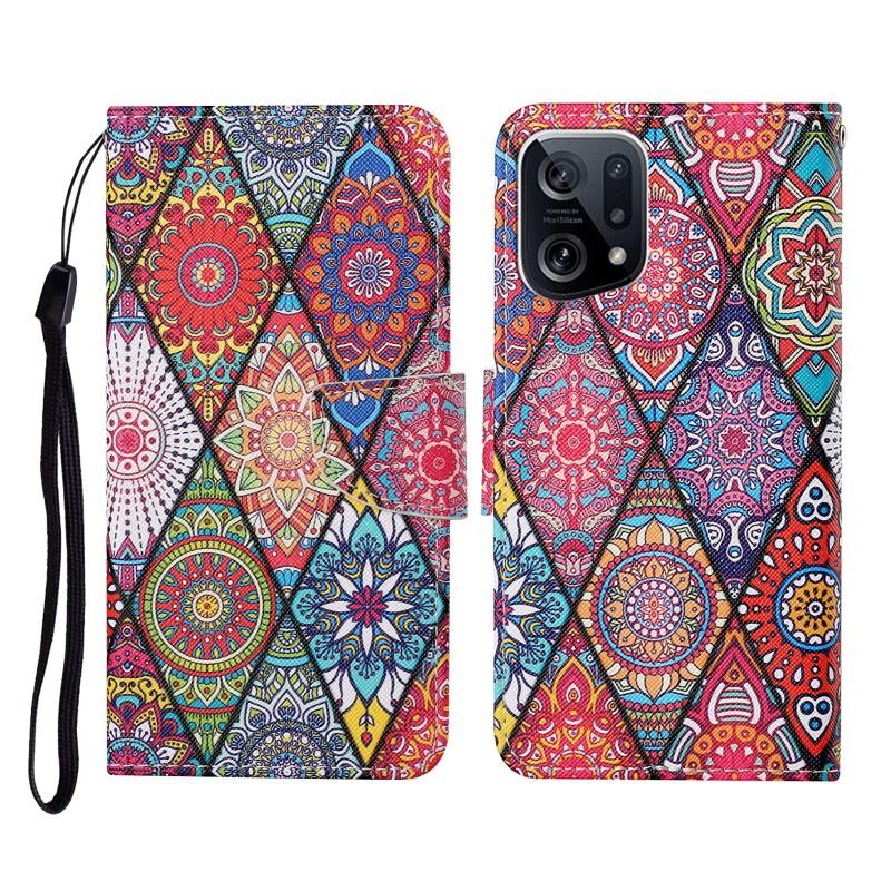 Θήκη τηλεφώνου από δέρμα με σχέδιο αναδιπλούμενου πολύχρωμου σχεδίου για OPPO Find X5 (Κόκκινο)