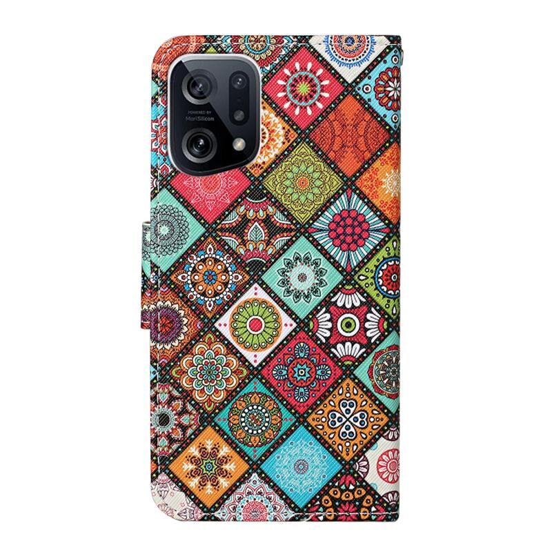 Θήκη τηλεφώνου από δέρμα με σχέδιο αναδιπλούμενου πολύχρωμου σχεδίου για OPPO Find X5 (Κόκκινο)