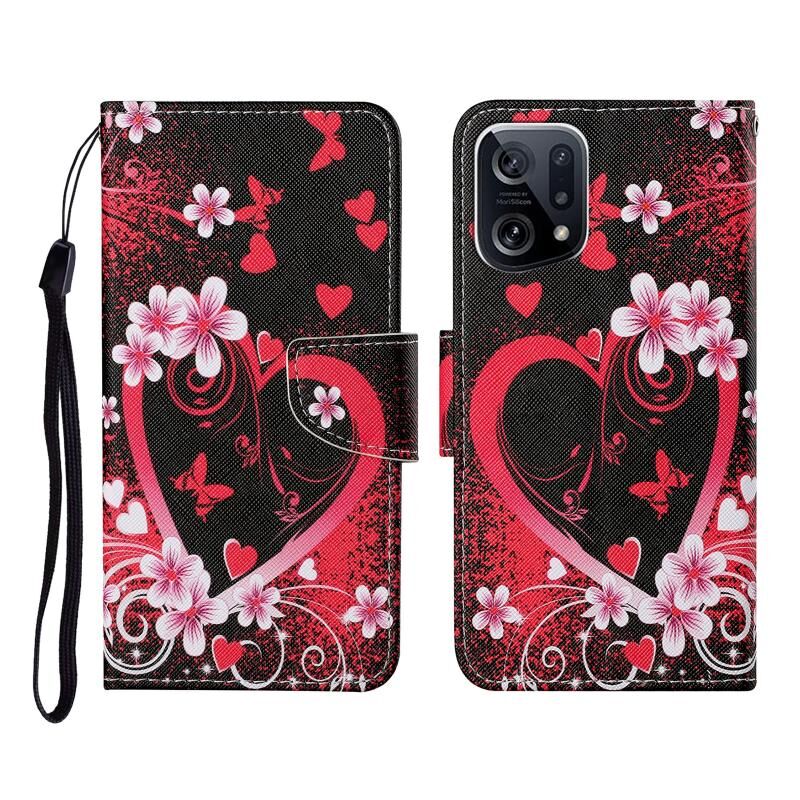 Θήκη τηλεφώνου από δέρμα με σχέδιο αναδιπλούμενου πολύχρωμου σχεδίου για OPPO Find X5 (Μαύρο Πεντάγραμμο)