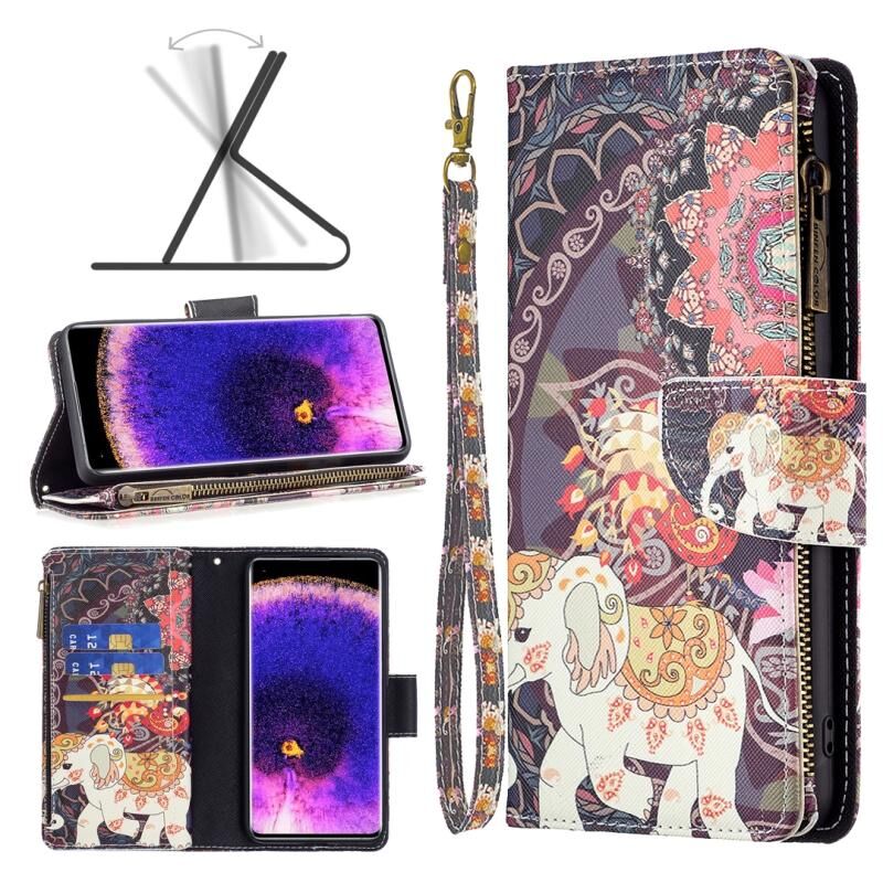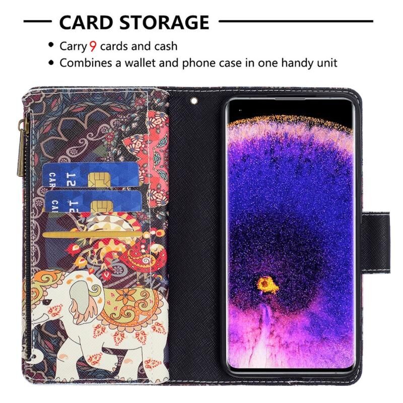 Θήκη τηλεφώνου από δέρμα με φερμουάρ και πολύχρωμο σχέδιο για OPPO Find X5 (Κόκκινο)