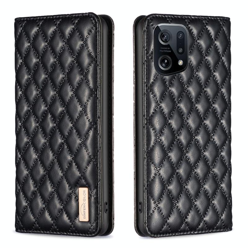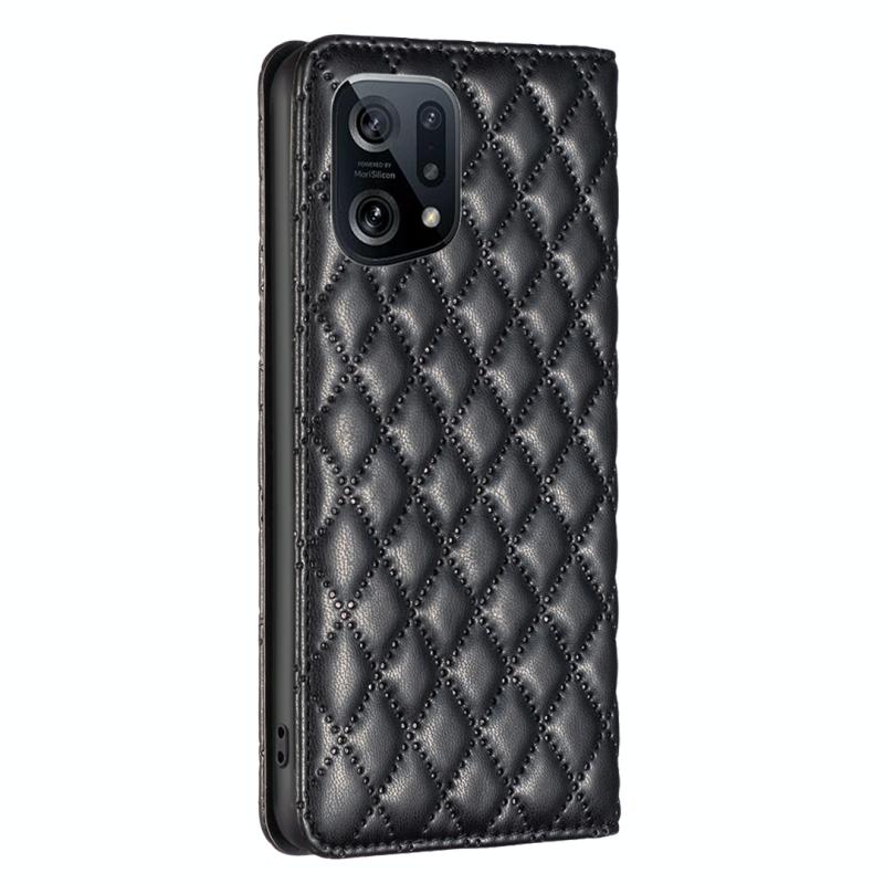 Θήκη τηλεφώνου με μαγνητικό δέρμα σε σχήμα διαμαντιού για OPPO Find X5 (Μαύρο)