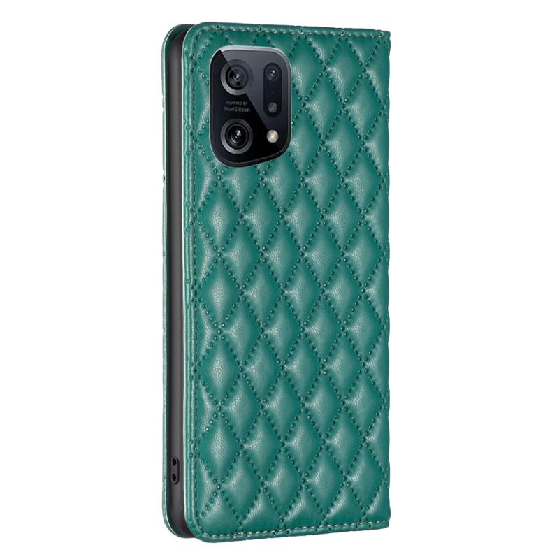 Θήκη τηλεφώνου με μαγνητικό δέρμα σε σχήμα διαμαντιού για OPPO Find X5 (πράσινο)