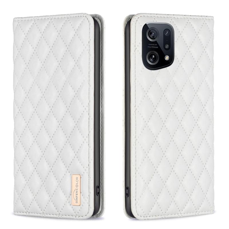Θήκη τηλεφώνου με μαγνητικό δέρμα σε σχήμα διαμαντιού για OPPO Find X5 (Λευκό)