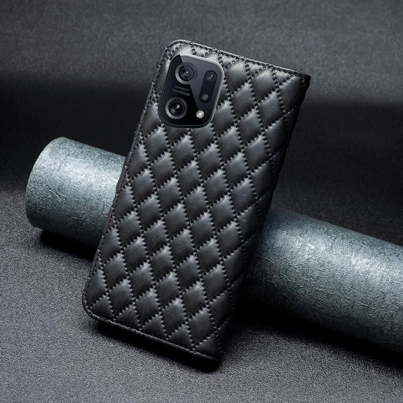 Για OPPO Βρείτε X5 Diamond Lattice πορτοφόλι δέρμα Flip τηλέφωνο υπόθεση (μαύρο)