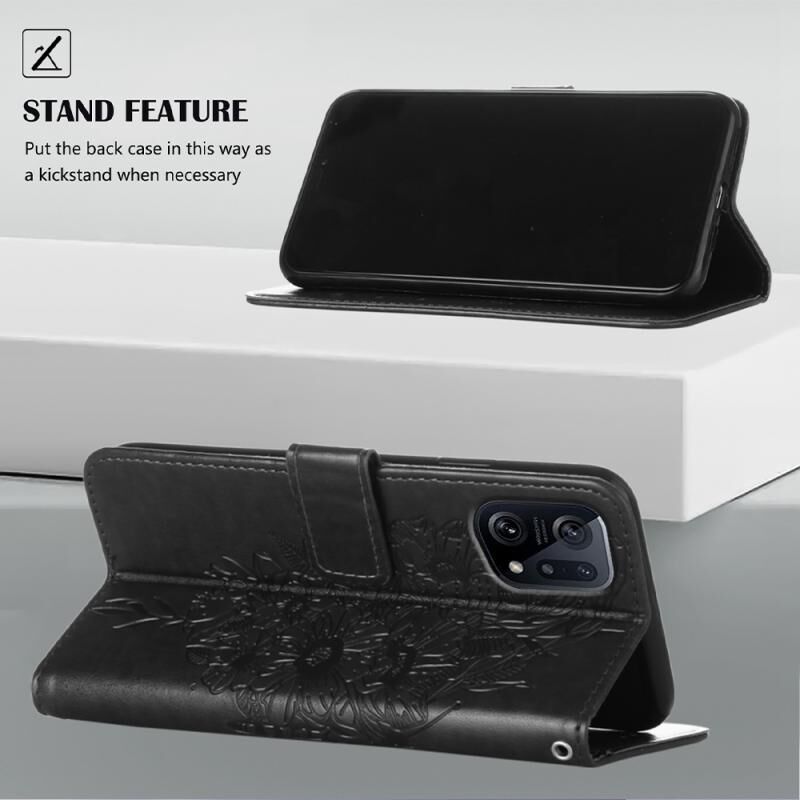 Θήκη τηλεφώνου από δέρμα με ανάγλυφο σχέδιο πεταλούδας για OPPO Find X5 (Γκρι)