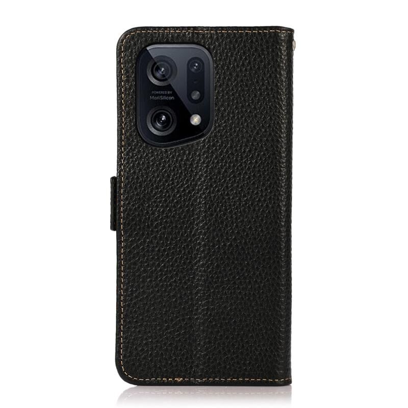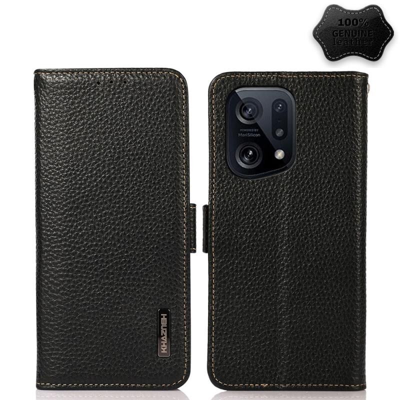 Θήκη τηλεφώνου OPPO Find X5 KHAZNEH με μαγνητικό κλείσιμο στο πλάι, από γνήσιο δέρμα Litchi, με προστασία RFID (Μαύρο)