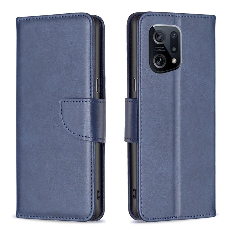 Θήκη τηλεφώνου από γνήσιο δέρμα με καθαρό χρώμα και υφή δέρματος αρνιού για OPPO Find X5 (Μπλε)