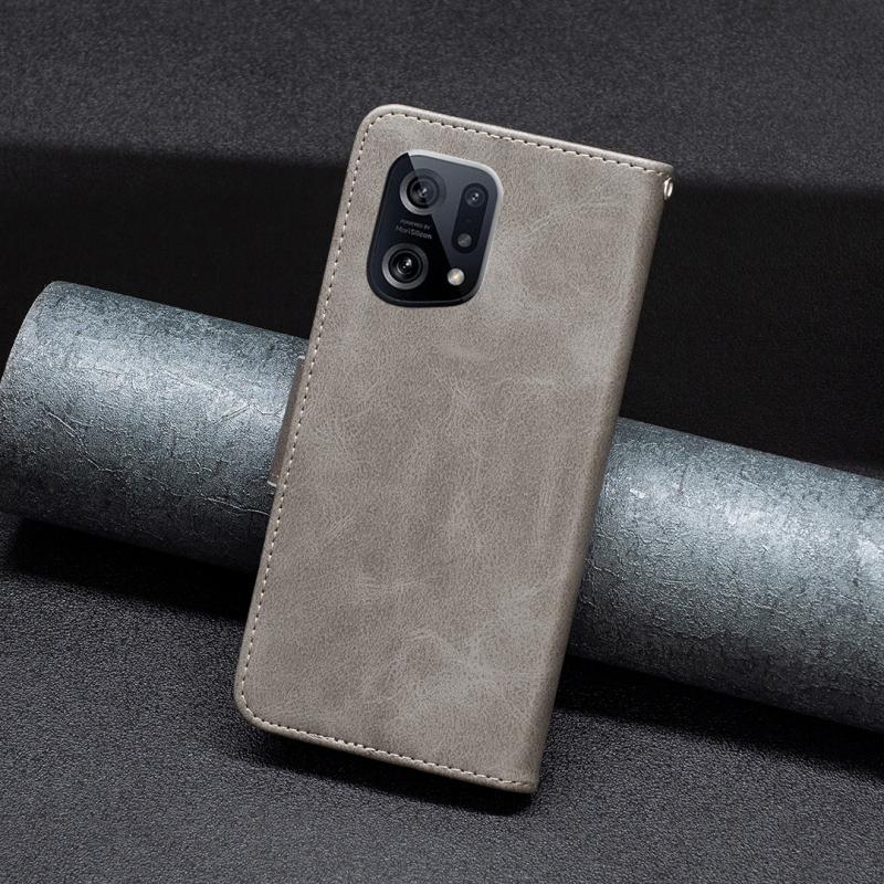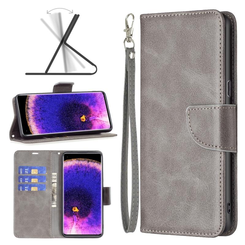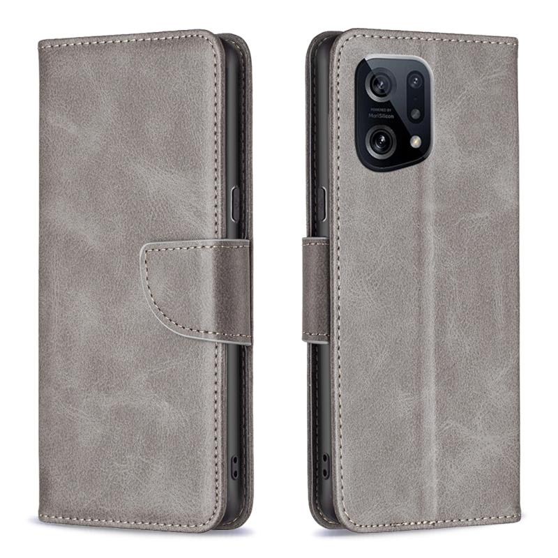 Θήκη τηλεφώνου από γνήσιο δέρμα με καθαρό χρώμα και υφή δέρματος αρνιού για OPPO Find X5 (Γκρι)