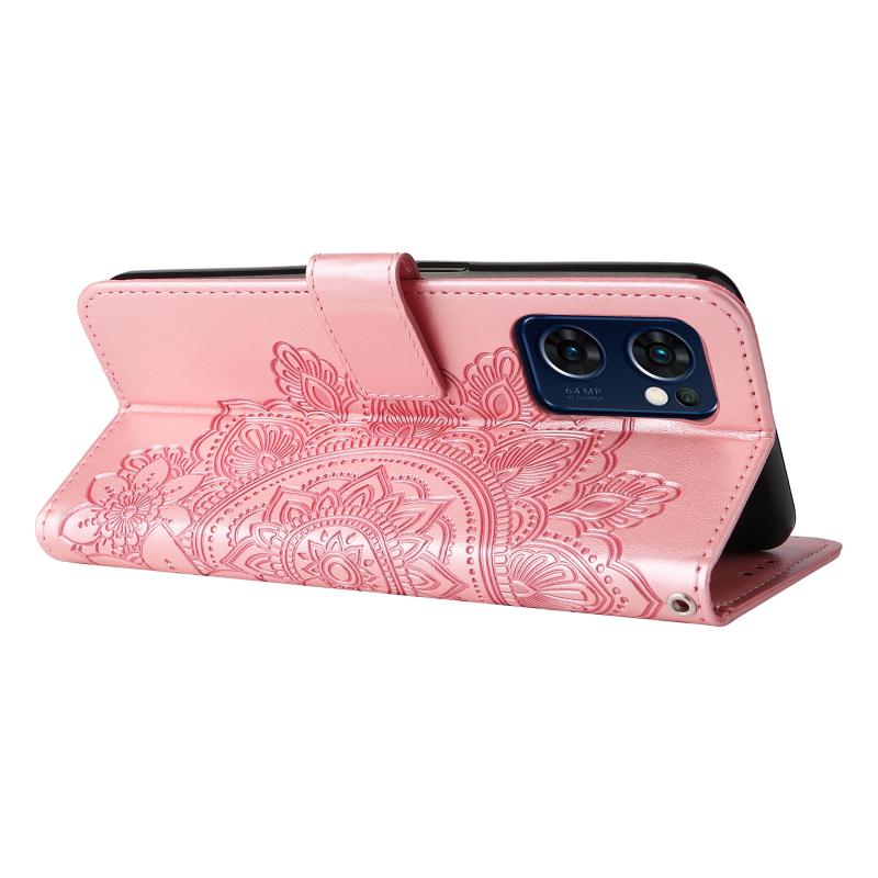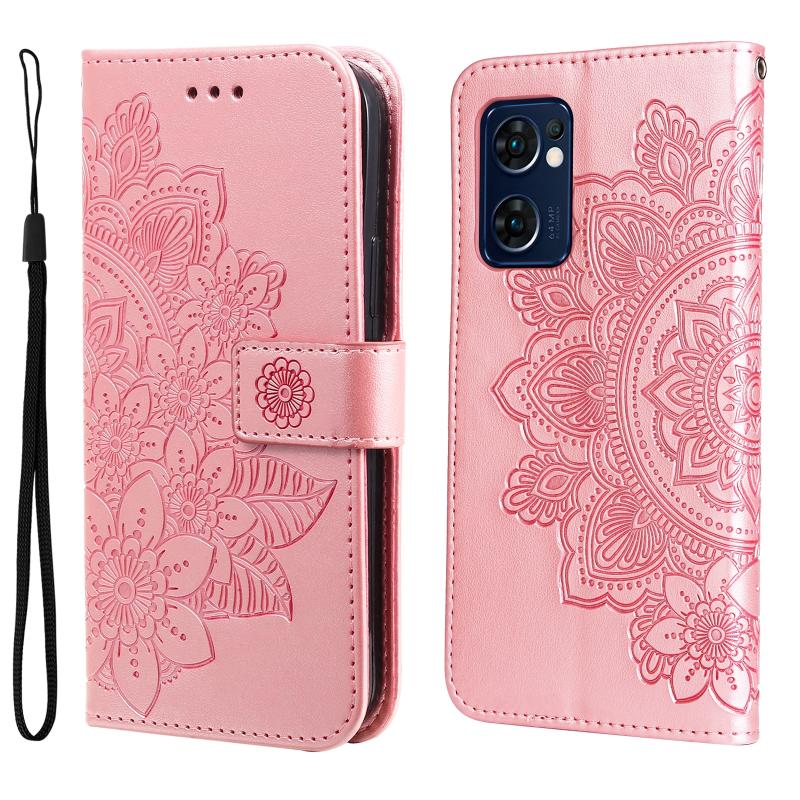 Θήκη τηλεφώνου από δέρμα με ανάγλυφα λουλούδια 7 πετάλων για OPPO Find X5 Lite / Reno7 5G (Ροζ χρυσός)