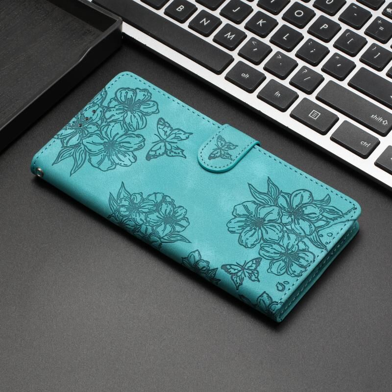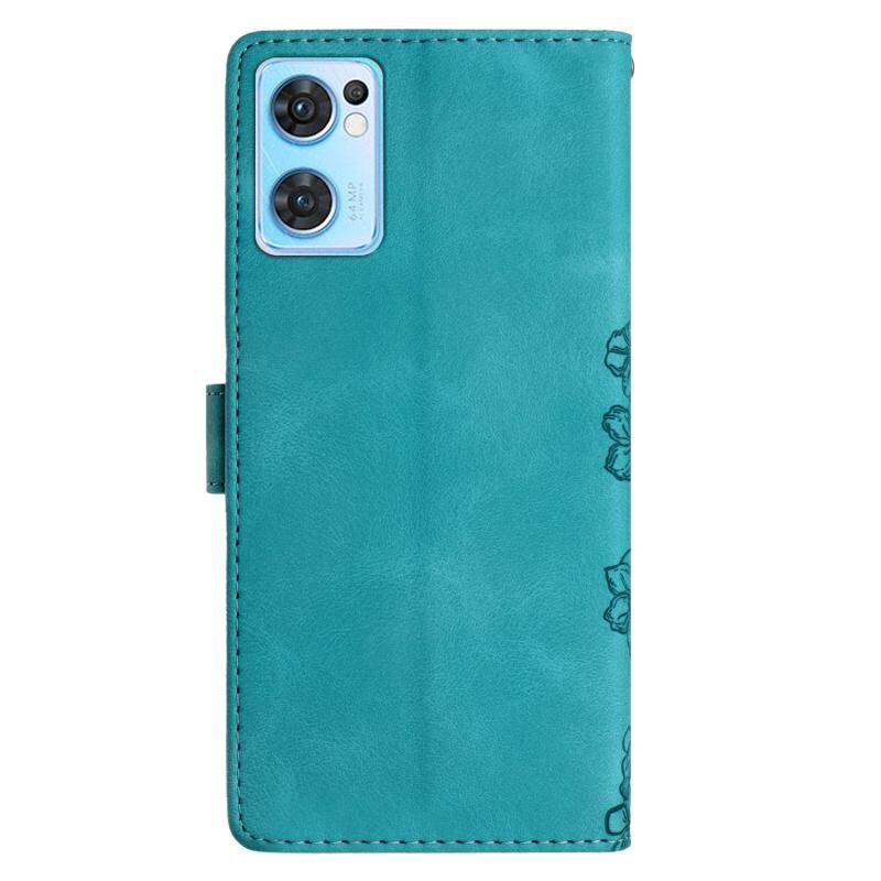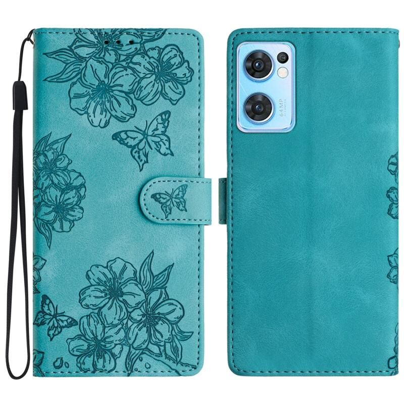 Θήκη τηλεφώνου OPPO Find X5 Lite / Reno7 5G Cherry Blossom Butterfly Skin Feel Embossed PU (πράσινο)