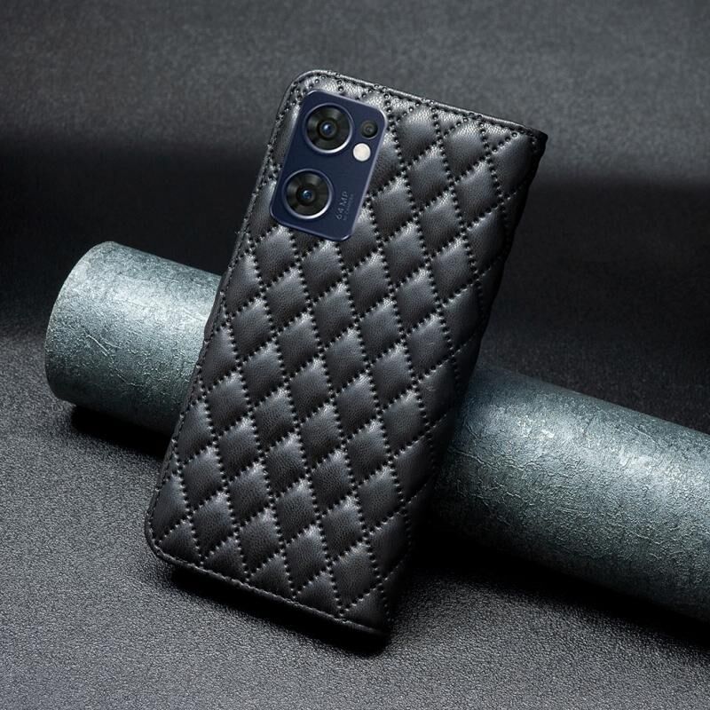 Για OPPO Βρείτε X5 Lite / Reno7 5G Diamond Lattice πορτοφόλι δέρμα Flip τηλέφωνο υπόθεση (Μαύρο)