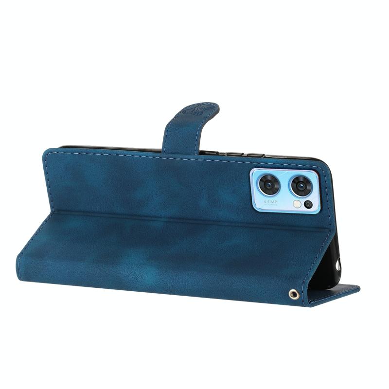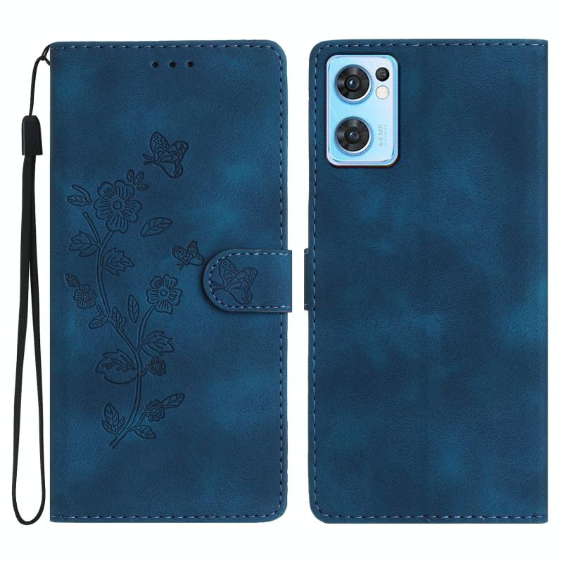 Θήκη τηλεφώνου από δέρμα με ανάγλυφο σχέδιο λουλουδιών και πεταλούδας για OPPO Find X5 Lite / Reno7 5G (Μπλε)