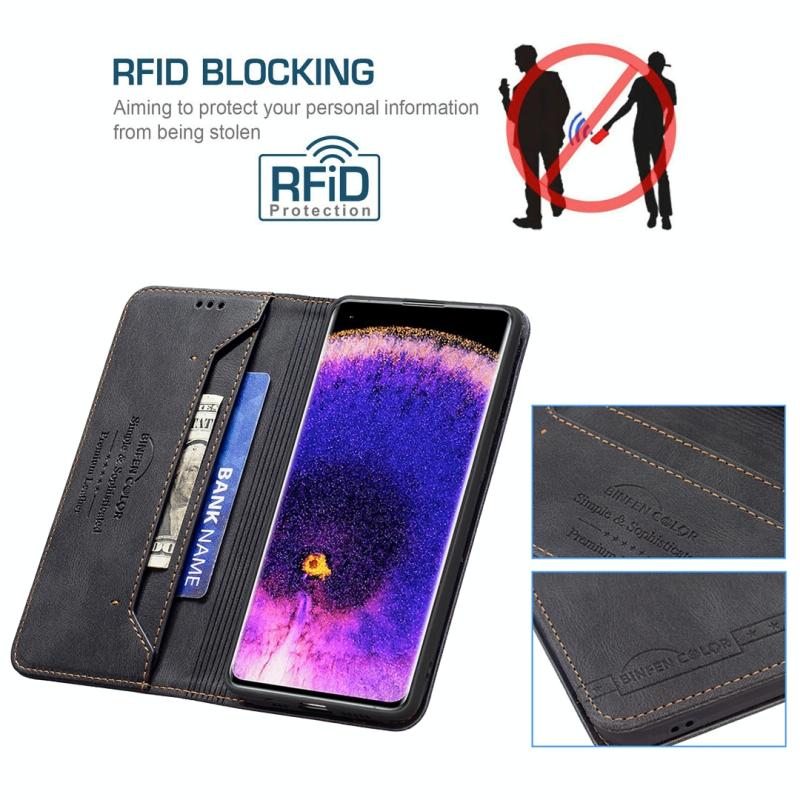 Θήκη τηλεφώνου δερμάτινη με μαγνητική προστασία RFID και αντι-κλοπής για OPPO Find X5 (Μπλε)