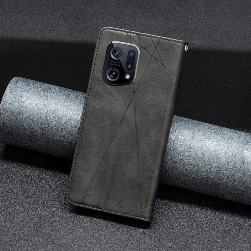 Θήκη τηλεφώνου από δέρμα με αόρατο μαγνητικό κλείσιμο για OPPO Find X5 Prismatic (Μαύρο)