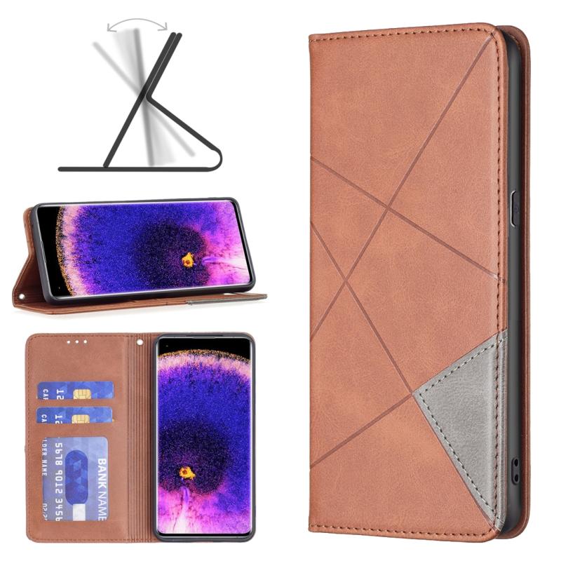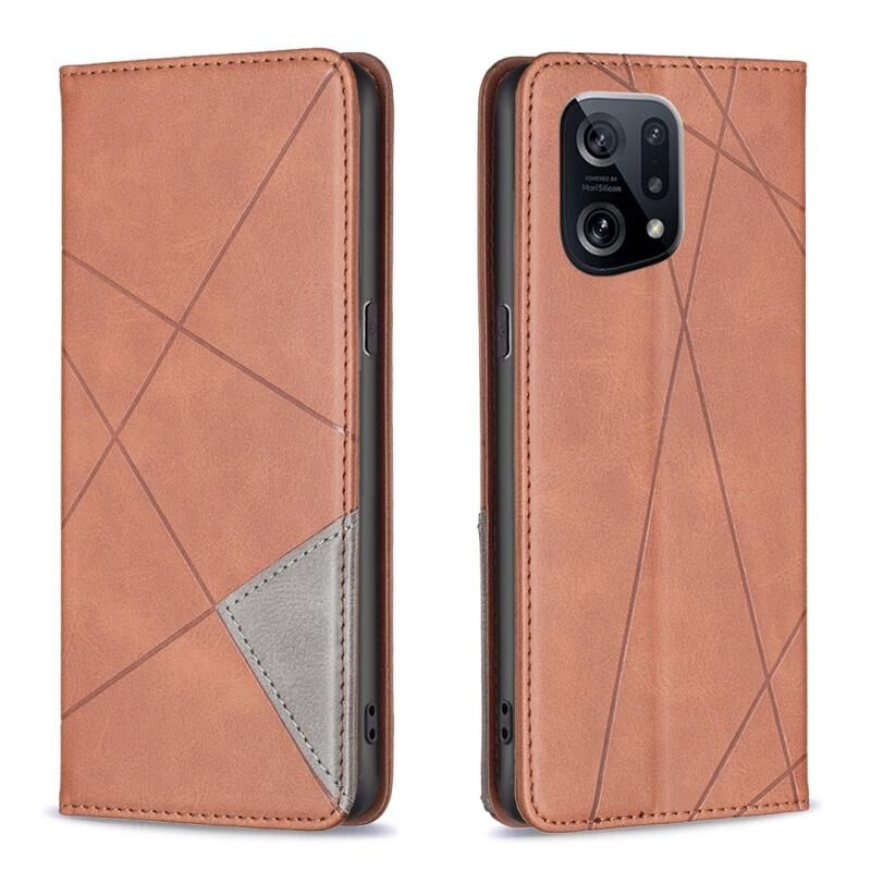 Θήκη τηλεφώνου από δέρμα με αόρατο μαγνητικό κλείσιμο για OPPO Find X5 Prismatic (Καφέ)