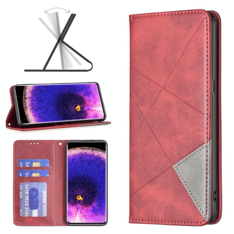 Θήκη τηλεφώνου από δέρμα με αόρατο μαγνητικό κλείσιμο για OPPO Find X5 Prismatic (Κόκκινο)