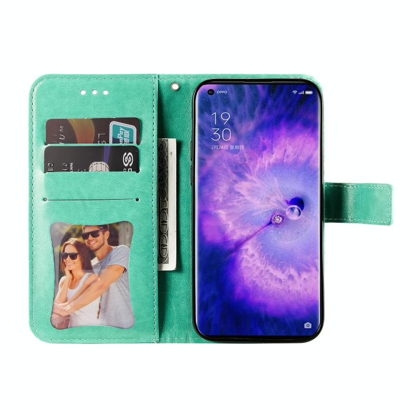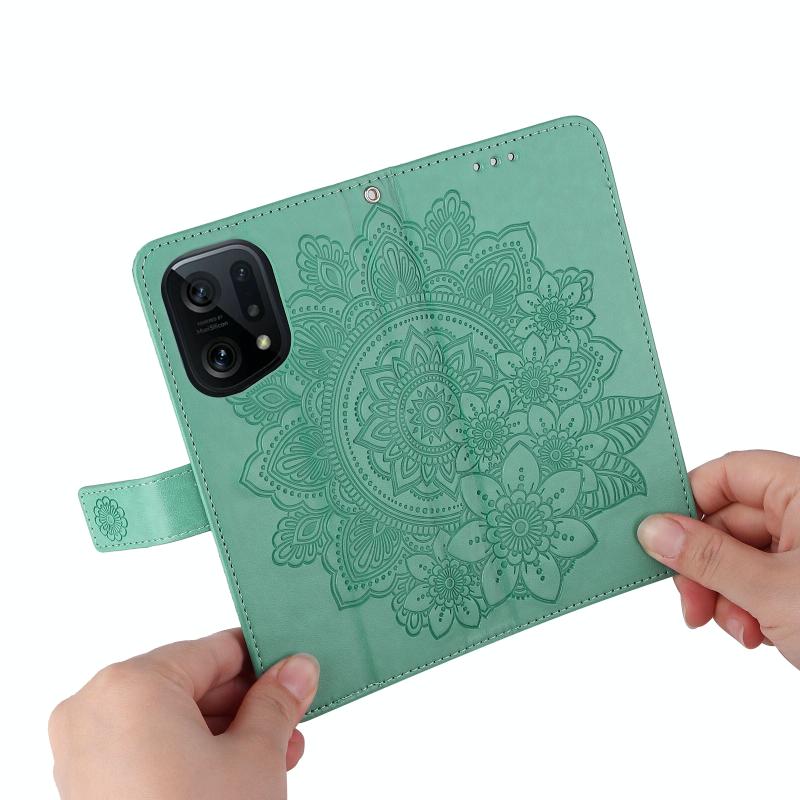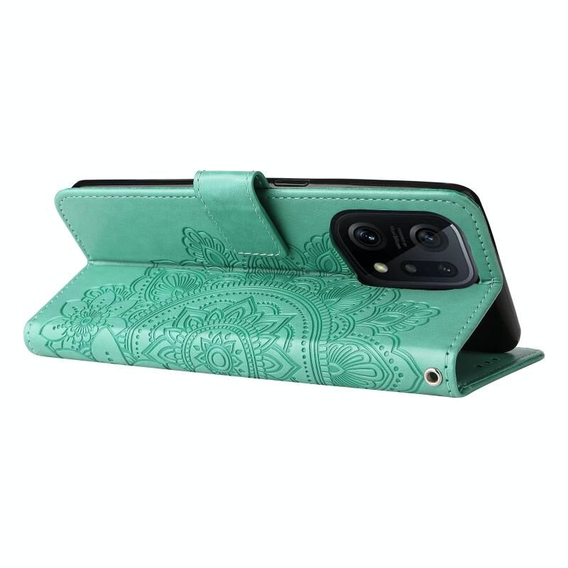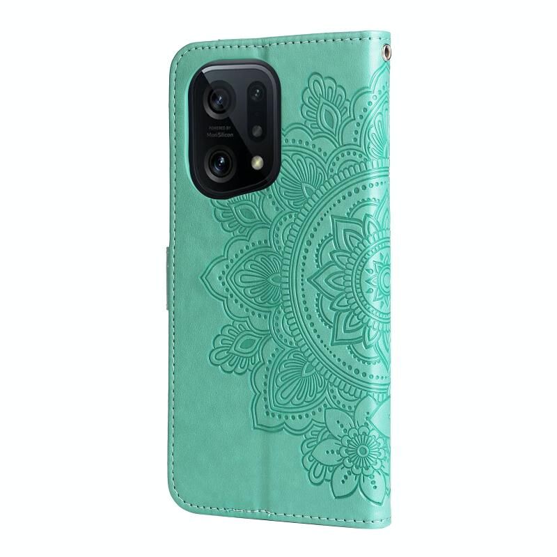 Θήκη τηλεφώνου από δέρμα με ανάγλυφα 7 πέταλα λουλουδιών για OPPO Find X5 Pro (Χρυσό Ρόδι)