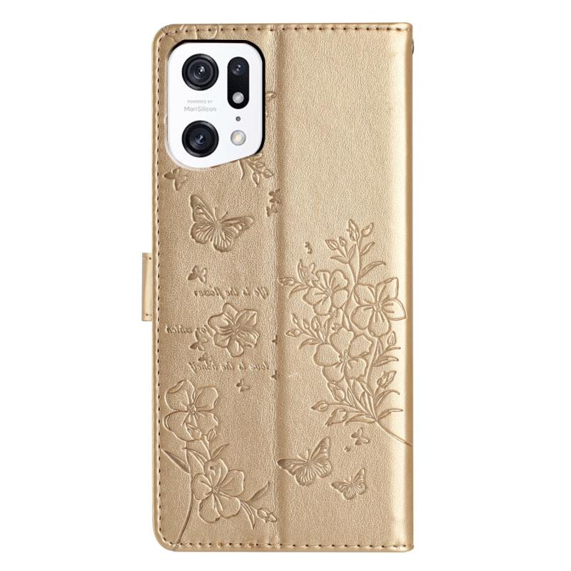 For OPPO Find X5 Pro Butterflies and Flowers Leather Phone Case(Gold)
