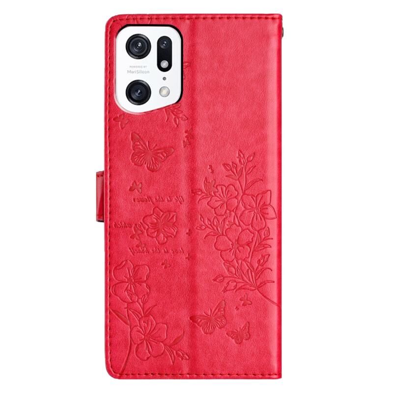 Θήκη τηλεφώνου από δέρμα για OPPO Find X5 Pro - Πεταλούδες και Λουλούδια (Κόκκινο)
