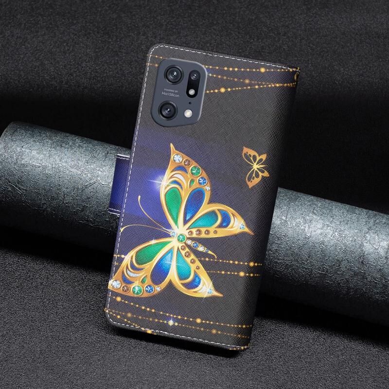 Θήκη τηλεφώνου δέρμα κατακόρυφου ανοίγματος με φερμουάρ και πολύχρωμο σχέδιο για OPPO Find X5 Pro (Μεγάλη Πεταλούδα)