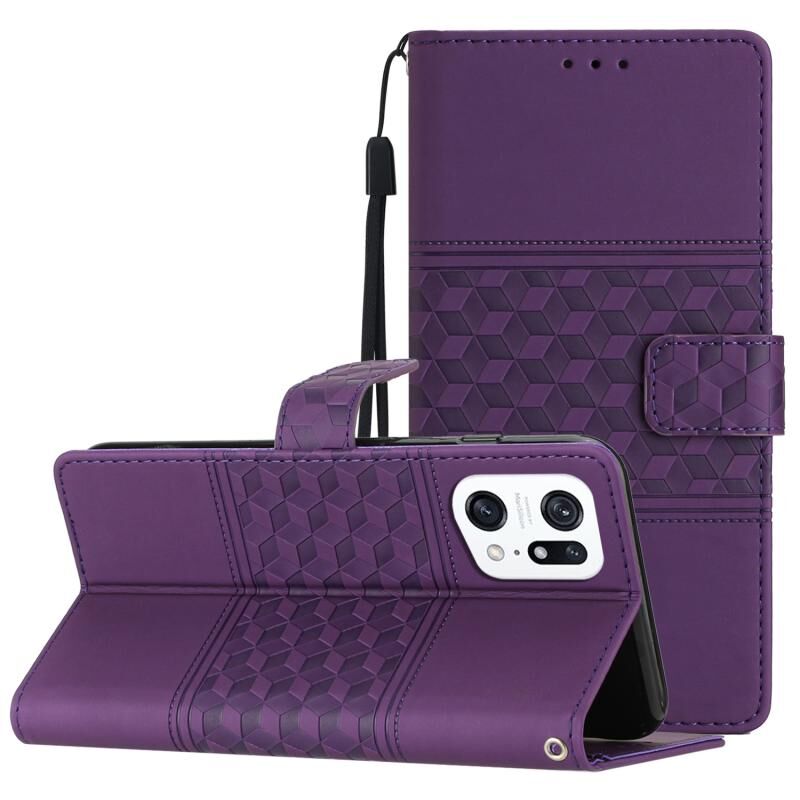 Για OPPO Βρείτε X5 Pro Diamond ανάγλυφο δέρμα αίσθηση δερμάτινη θήκη τηλεφώνου με κορδόνι (μωβ)