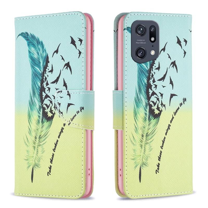 Θήκη τηλεφώνου από δέρμα με σχέδιο για OPPO Find X5 Pro (Φτερό)