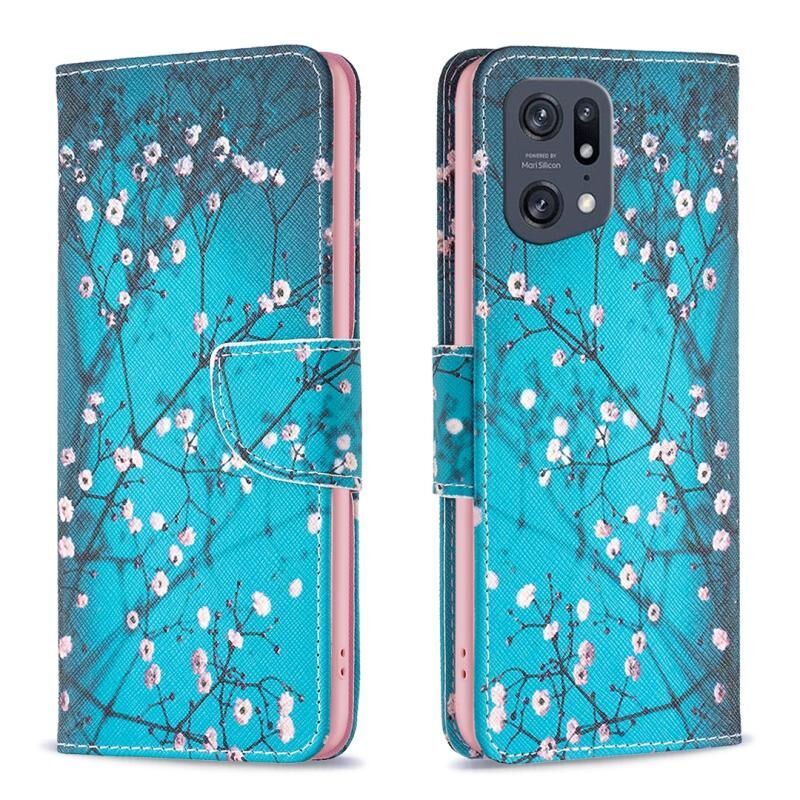 Θήκη τηλεφώνου από δέρμα με σχέδιο για OPPO Find X5 Pro (Δαμασκηνιά)