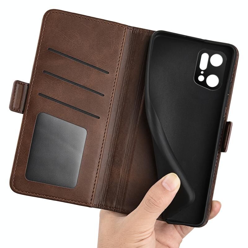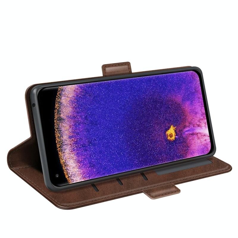 Για OPPO Find X5 Pro διπλής όψης μαγνητική πόρπη δερμάτινη θήκη τηλεφώνου (καφέ)