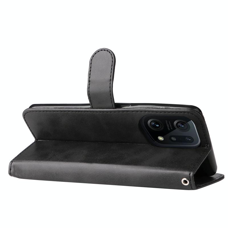 Θήκη δέρματος οριζόντιας αναδίπλωσης με φερμουάρ και υφή μοσχαριού για OPPO Find X5 Pro (Καφέ)