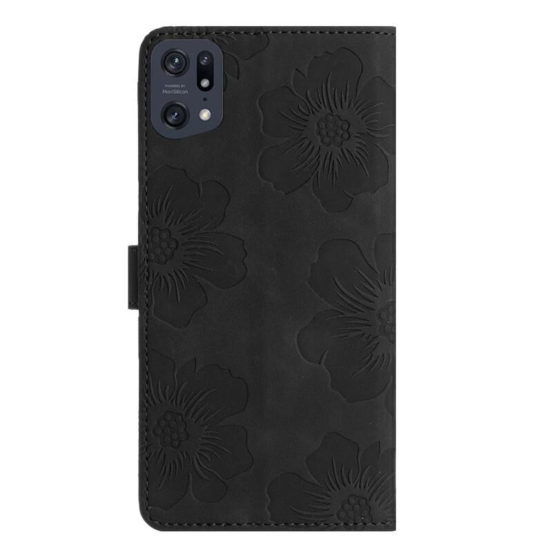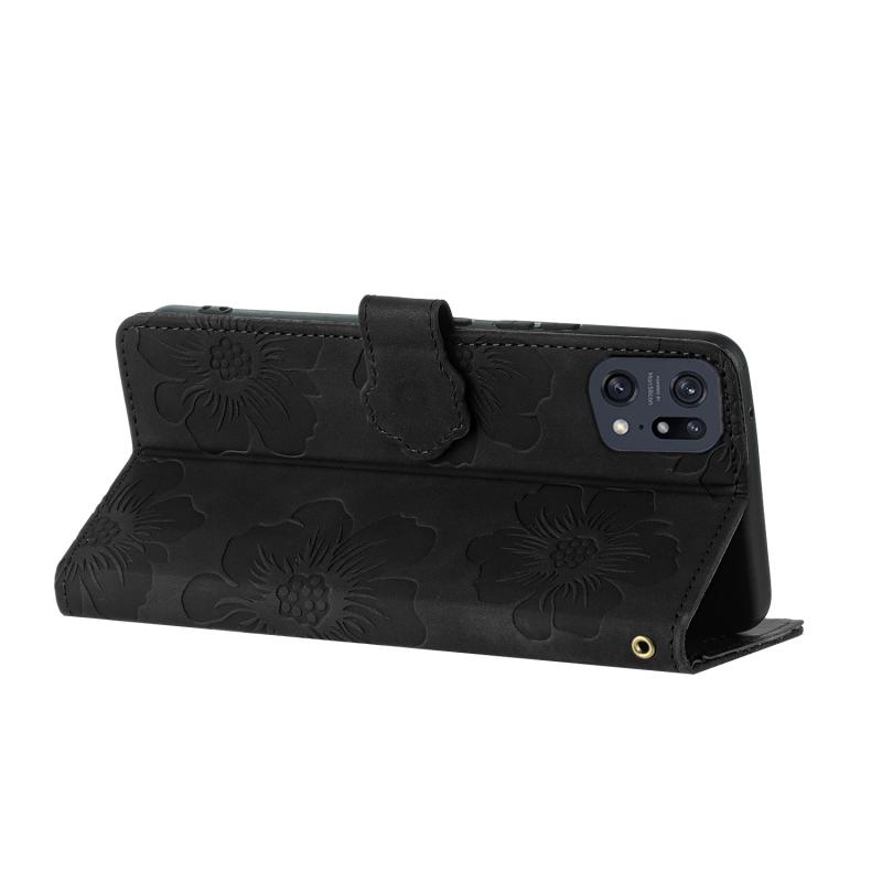 Θήκη τηλεφώνου από δέρμα με ανάγλυφο σχέδιο λουλουδιών για OPPO Find X5 Pro (Μαύρο)