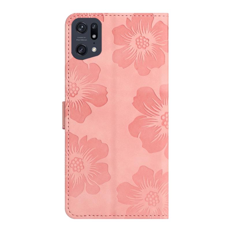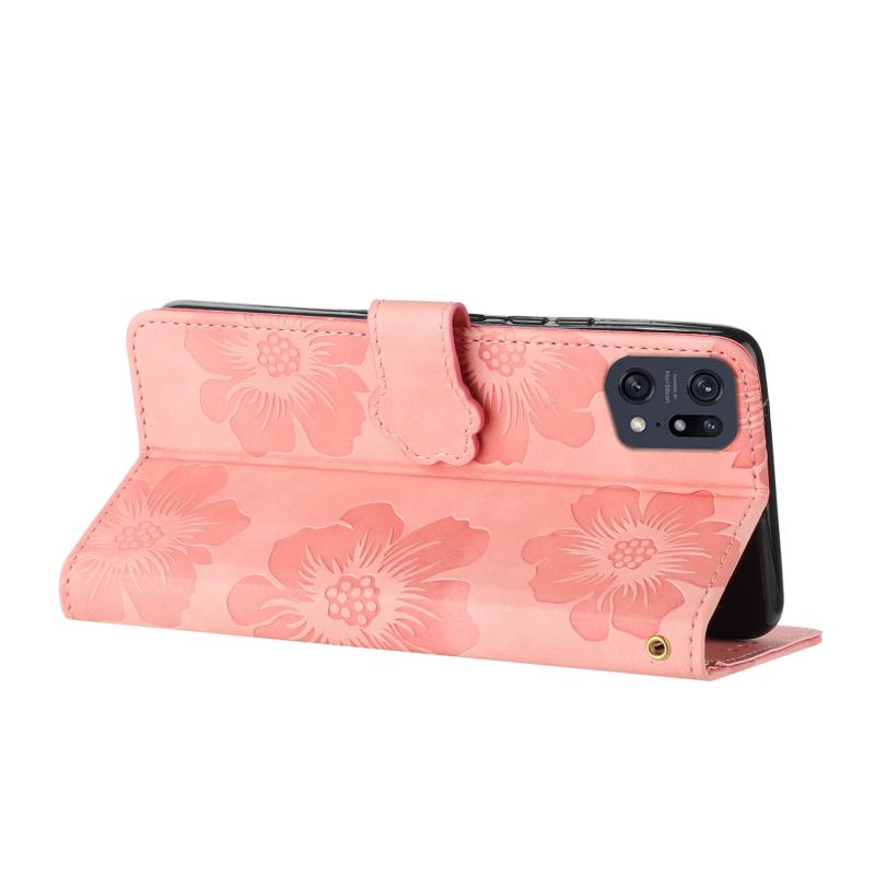 Θήκη τηλεφώνου από δέρμα με ανάγλυφο σχέδιο λουλουδιών για OPPO Find X5 Pro (ρόζ)